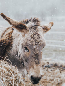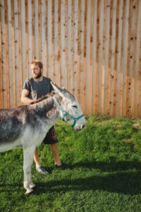Swoje zwierzaki zostawcie w domu. Osiołek mógłby być podenerwowany nowym zwierzakiem na jego terytorium.